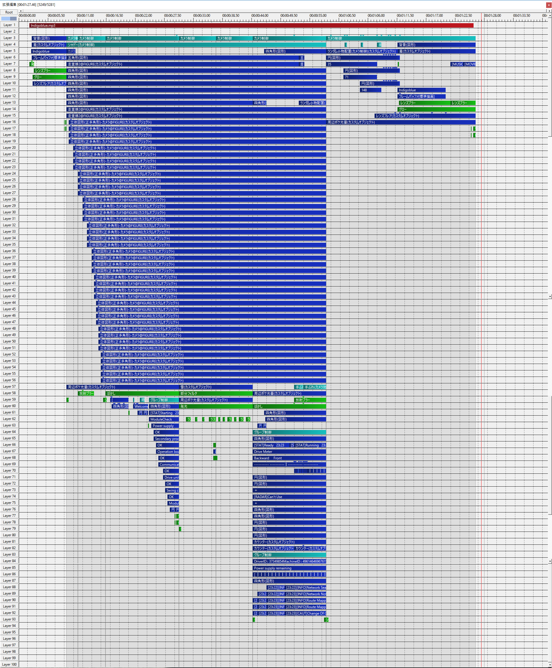 最近再びハマったモーショングラフィックスをやってみました。 (とか言いつつ半分はモニターグラフィックス・・・) もちろん、AviUtl。 そもそもモーショングラフィックスとはですが、ニコニコ大百科には「従来の静止画としてのグラフィックスデザインに動きや音を加え、映像の形態を取った視覚表現である。」と書かれています。 もっと噛み砕くと、「絵や図形がグリグリ動かす映像」みたいな感じ…かな? (MAD動画も似た部類になりそう(小並感)) ◆良い曲あるよというわけで、やるなら意味を込めたいということで「フリー音楽にも良曲があるんだ!」ということを伝えようと、個人的な趣味で選んでみました。好きなテーマとしては、サイバー、モダン、SF、みたいなキーワードです。 選んだ曲がこちら フリーBGM素材 『Indigoblue』 試聴ページ|フリーBGM DOVA-SYNDROME 長さも程良く、響くメロディが爽やかかつお洒落でなかなか好みでした(笑) ◆作ってみるモーショングラフィックスはテレビとかMV(MusicVideo)で見ることは多いのでそんな雰囲気を持ちながら、曲に聴き入ってみます。曲の世界に入り込んでなんとなく感じる雰囲気やイメージから、動画の世界観や動き(カット)を組み立てていきます。 作ってる最中に思ったのですが、割とおとなしめな曲なので画面の動きが派手になりにくく全体的におとなしめな映像になりました。。 こんな感じで本格的?にゴリゴリなモーショングラフィックスを作るのは初めてなので使ってるレイヤーが90にまで達したときはちょっと焦りました。 賢い人はシーン機能とか使うのだろうけどなかなかまとまった動きの物が無くて… 中盤のモニターこそレイヤー食ってたしシーン機能使えば良かったね、、、何故か地味にテンポに合わせて表示変えてるし (ここだけのお話、シーンを切り替えてRootに戻るとグリッドの設定がリセットされるバグがありました。) さらに発射ハッチから飛び立つ飛行機的な場面を想像したがばっかりに、AviUtlで3D空間を表現するとかいう暴挙を… でもAviUtlマスター達はこんなの当たり前なんだよね…きっと… というか3D空間を造り上げたのは今回が初めて。 カメラ制御はちょっと使ったことある程度です。 ◆そしてAviUtlの宿命そして何よりAviUtlが重いのなんのあちこちにある図形、大量に置かれた立体図形、カメラ制御とシャドー、オブジェクト大量生産のモニターグラフィックス、ダメ押しにエフェクト、、、 編集画面で再生などもはや論外の状態でした。 しかもレイヤー数が多すぎていらない物を非表示にするだけでも手間が掛かって面倒くさい。(のでやりません。) 方向キーでコマ送りで1秒間隔の確認をするか、変更箇所のみを5分ないしは10分程度掛けて出力するかのスロースタイル! 出力して確認は動画編集ではよくある話っぽいですがそれでもつらい… ◆何はともあれとまあ、大雑把ながら色々語ってみましたがまあ一つ完成して良かったですね。なんだかんだ2日程度で完成させたんですね。(12月29日スタート) ワースゴーイ というか実は昨年にこっそり音MADの詰め合わせ動画を元旦に上げまして、その恒例行事を引き継ぐべく今回も元旦投稿しました。 年に一本とかいう存在感皆無なことにならないようにしたい…なー(棒 そうそう、最後になんですが、AMCupなるものを見つけましてそれに参加してみたいななんて思ってます。 いい発想が湧いてきて忙しさに追われず平穏に作ることが出来たらいいな。 PR |